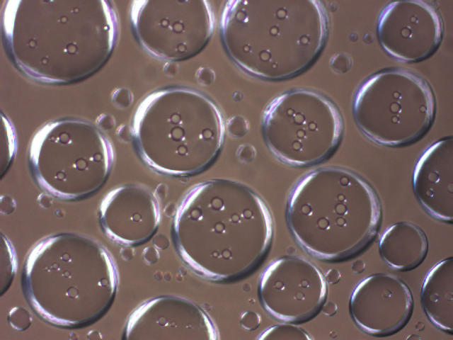 A microfluidic device is developed to produce monodisperse transparent particles with controllable sizes and mechanical and aggregation properties that will mimic Red Blood Cells for biomedical applications.